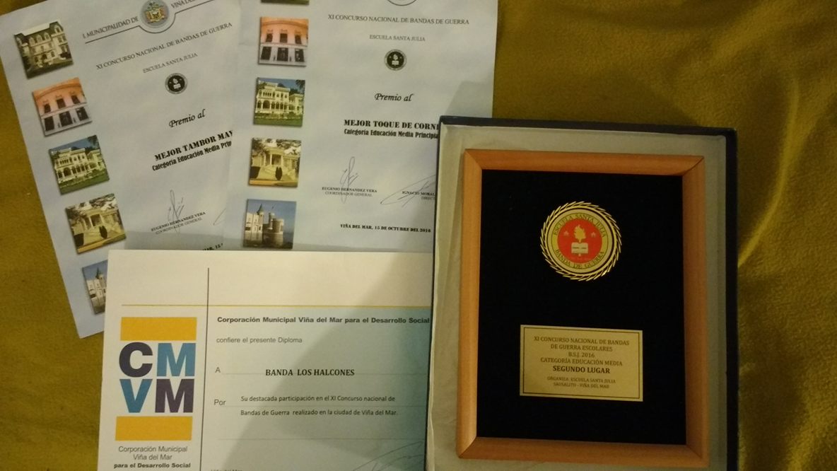 La Banda de Guerra Halcones de Coquimbo participó el pasado sábado 15 de octubre en la XI versión del concurso Nacional de Bandas de guerra organizado por el Colegio Santa Julia de Viña del Mar, participando en la categoría Educación Media Novatas, que corresponde a bandas que no han ganado primeros lugares consecutivos, obteniendo el Segundo lugar a nivel nacional, de entre 10 bandas, además de ganar premios individuales al Mejor Tambor Mayor Sr. David Espejo, y mejor Toque de Atención Sr. Fernando Álvarez.