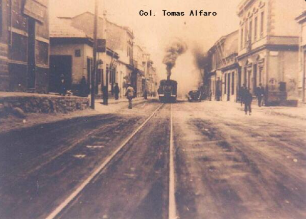 (adsbygoogle = window.adsbygoogle || []).push({}); jj La foto corresponde a mediados del siglo XX en donde por calle aldunate transitaba el tren ante la mirada de los transeúntes de la época.