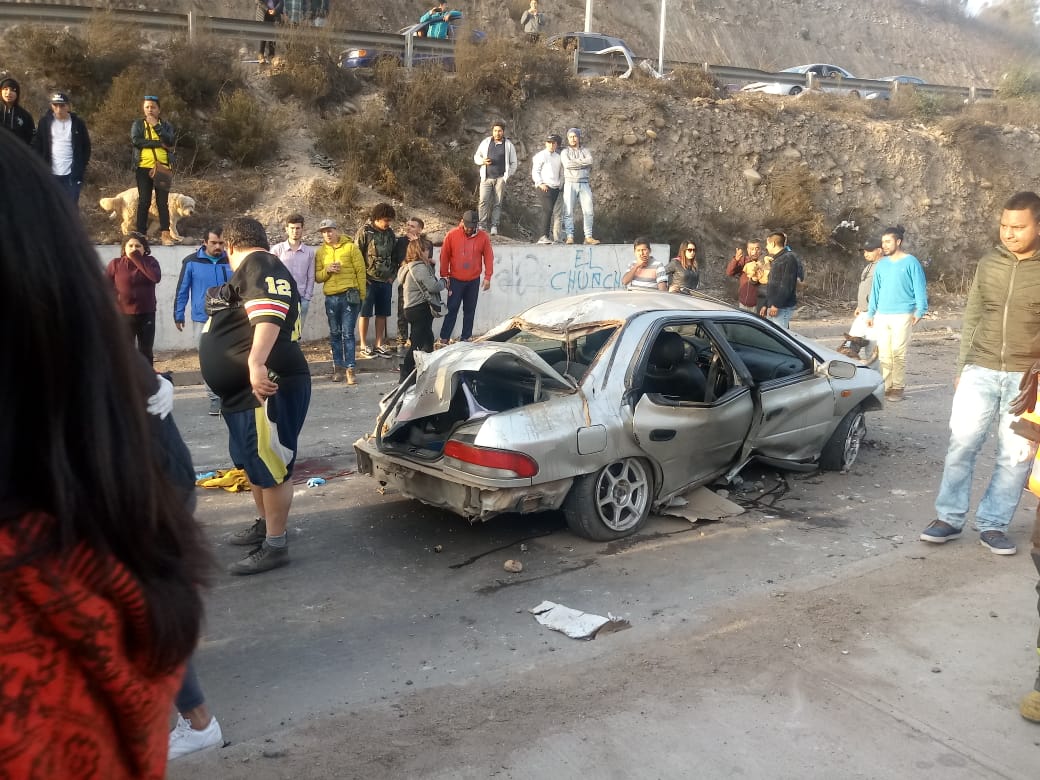 Un grave accidente se produjo la tarde de este domingo en las afueras del Parque Coll de La Serena. Un automóvil de color gris cayó cuando bajaba por calle Colo Colo, quedando en Avenida Cisternas, específicamente la pista que sube hacia los sectores de La Antena y La Florida.